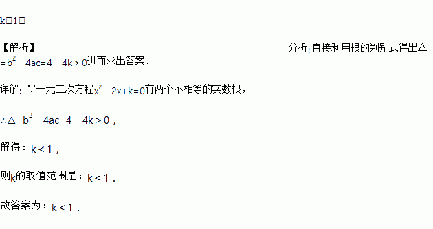 若一元二次方程x2﹣2x+k=0有两个不相等的实数根,则k的取值范围是_____.