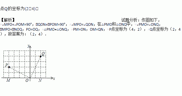 如图,在平面直角坐标系中,将点P(-4,2)绕原点顺时针旋转90°,求其对应点Q的坐标.