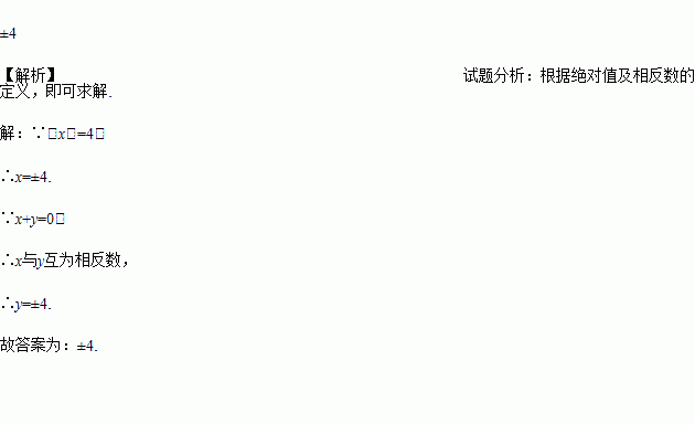 若|x|=4,且x+y=0,那么y=___________.