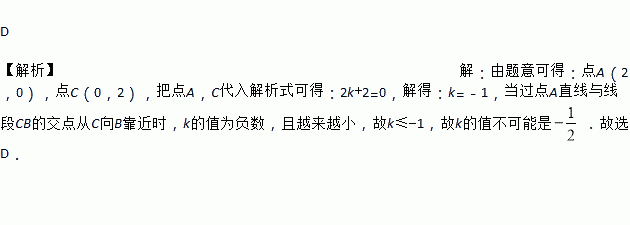 的图象经过点A,且与边BC有交点.若正方形的边长为2,则k的值不可能是( )