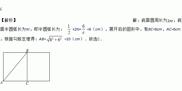 如图,一圆柱高8 cm,底面半径为cm,一只蚂蚁从点爬到点处吃食,要爬行的最短路程是( )cm.