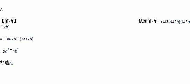 A 【解析】试题解析:(-3a+2b)(-3a-2b) =(3a-2b)(3a+2b) = 9a2-4b2 故选A.