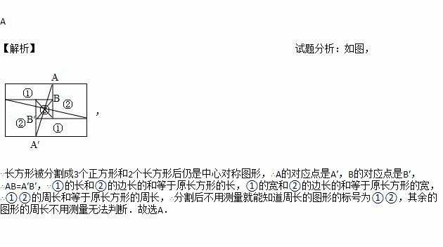 如图,小明家的住房平面图呈长方形,被分割成3个正方形和2个长方形后仍是中心对称图形.若只知道原住房平面图长方形的周长,则分割后不用测量就能知道周长的图形的标号为( )