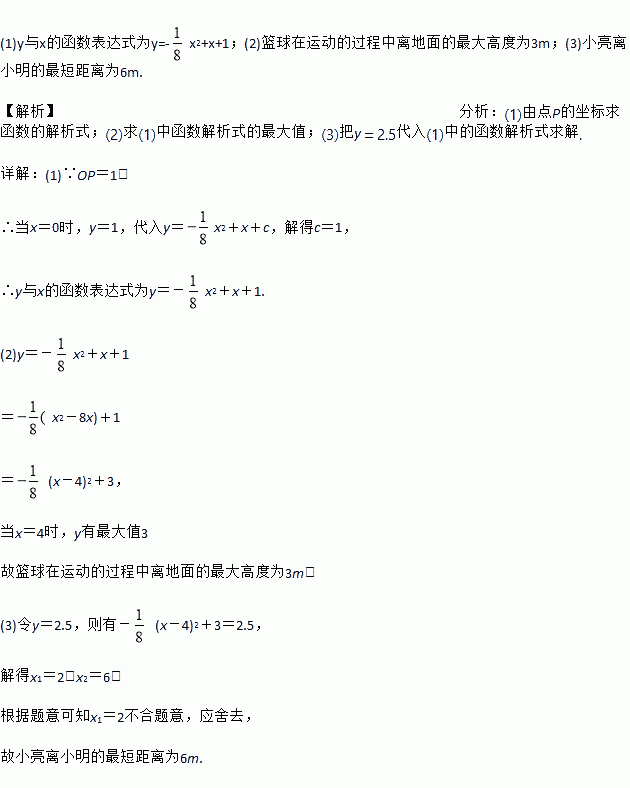 小明在一次打篮球时,篮球传出后的运动路线为如图所示的抛物线,以小明所站立的位置为原点O建立平面直角坐标系,篮球出手时在O点正上方1m处的点P.已知篮球运动时的高度y(m)与水平距离x(m)之间满足函数表达式y=-
