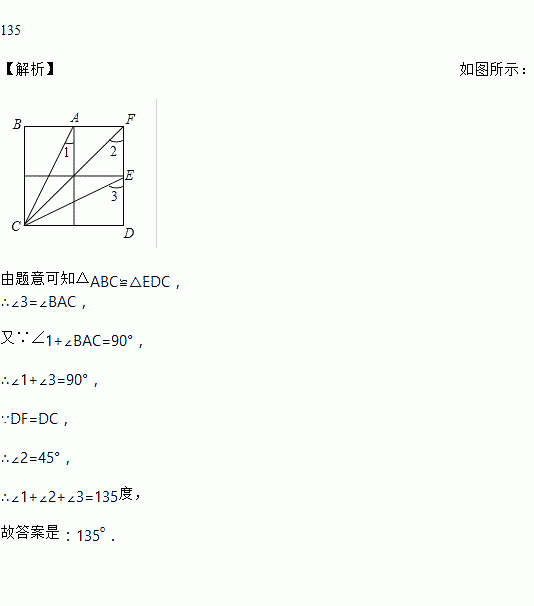 如图,已知方格纸中是4个相同的正方形,则∠1+∠2+∠3=____度.