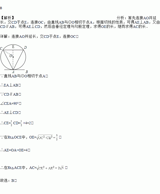如图,直线AB与⊙O相切于点A,弦CD∥AB,若⊙O的直径为5,CD=4,则弦AC的长为( )