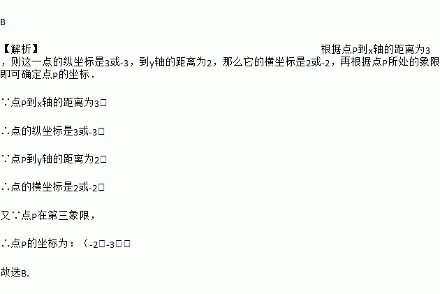 若点P(x,y)在第三象限,且点P到x轴的距离为3,到y轴的距离为2,则点P的坐标是( )
