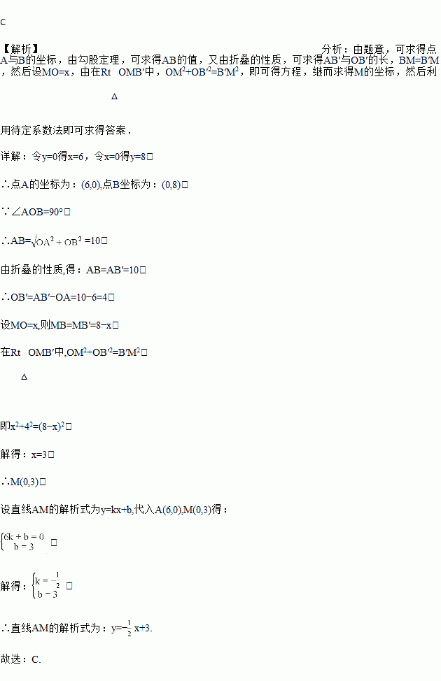 x+8与x轴、y轴分别交于点A和点B,M是OB上的一点,若将△ABM沿AM折叠,点B恰好落在x轴上的点B′处,则直线AM的函数解析式是( )