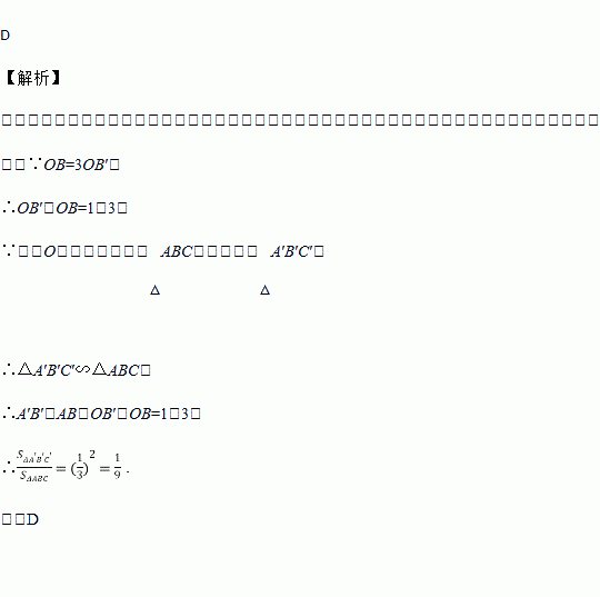 如图,以点O为位似中心,将△ABC缩小后得到△A′B′C′,已知OB=3OB′,则△A′B′C′与△ABC的面积比为( )