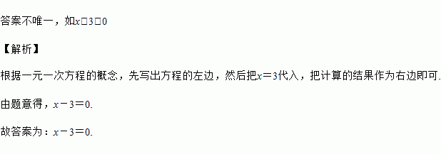 请构造一个一元一次方程,使得方程的解为x=3:__________________.
