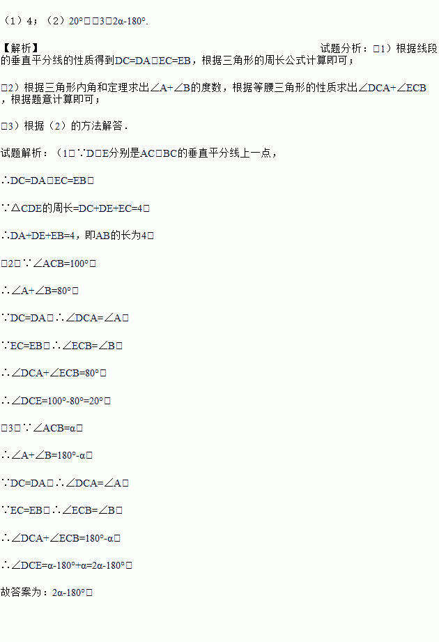 (2)若∠ACB=100°,求∠DCE的度数;