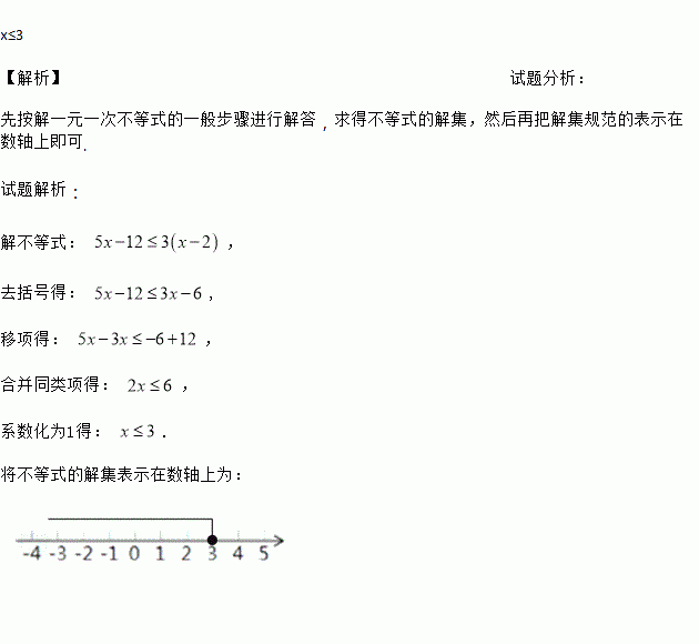 解不等式: ,并把解在数轴上表示出来。