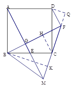 如图,正方形ABCD中,E为BC上一点,过B作BG⊥AE于G,延长BG至点F使∠CFB=45°![]()