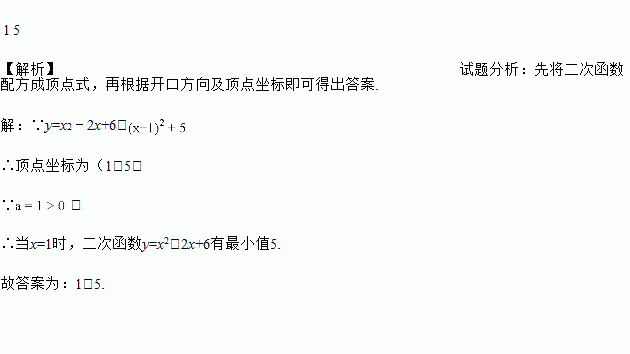 当x=________时,二次函数y=x2﹣2x+6有最小值________.