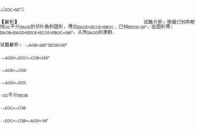 如图,已知∠AOE=∠COD,且射线OC平分∠BOE,∠EOD=30°,求∠AOD的度数.