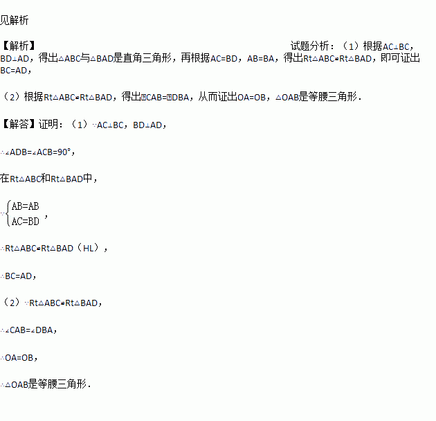 如图,已知AC⊥BC,BD⊥AD,AC 与BD 交于O,AC=BD.