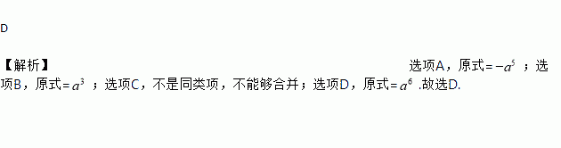 D 【解析】选项A,原式=;选项B,原式=;选项C,不是同类项,不能够合并;选项D,原式=.故选D.