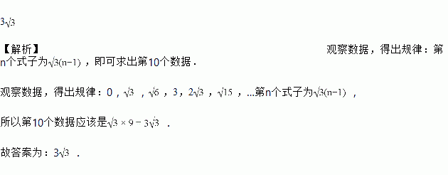 请仔细观察下列一组数据(它们可是按照一定规律排列着的):0,,,3,2,,…那么第10个数据应该是______ .