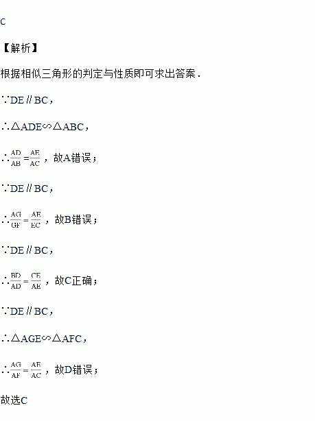 如图,在△ABC中,D、E分别为AB、AC边上的点,DE∥BC,点F为BC边上一点,连接AF交DE于点G,则下列结论中一定正确的是( )
