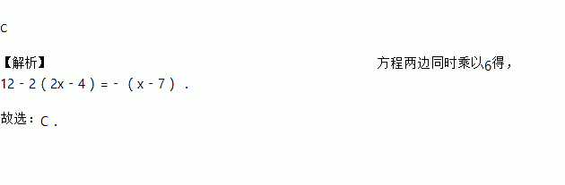 C. 12﹣2(2x﹣4)=﹣(x﹣7) D. 12﹣(2x﹣4)=﹣(x﹣7)