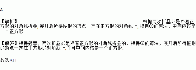 将一张正方形纸片按如图步骤①,②沿虚线对折两次,然后沿③中平行于底边的虚线剪去一个角,展开铺平后的图形是( )