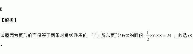 菱形ABCD的对角线长分别为6和8, 则菱形的面积为( )