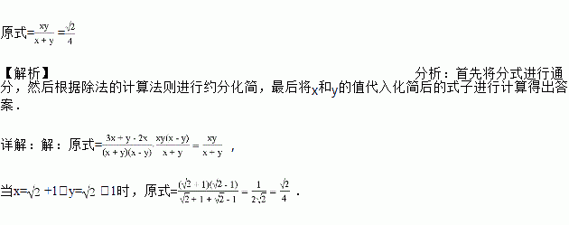 先化简,再求值:(﹣)÷,其中x=+1,y=﹣1.