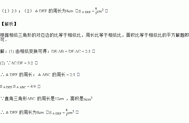 如图,直角三角形到直角三角形是一个相似变换,与的长度之比是.
