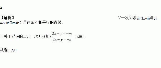 已知一次函数y1=2x+m与y2=2x+n(m≠n)的图象如图所示,则关于x与y的二元一次方程组的解的个数为( )