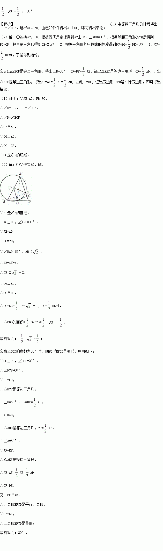 ②当∠GCD的度数为_____时,四边形EFCD是菱形.