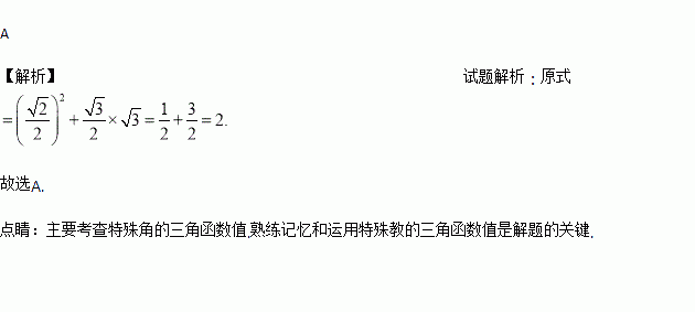 计算sin245°+cos 30°·tan 60°,其结果是( )