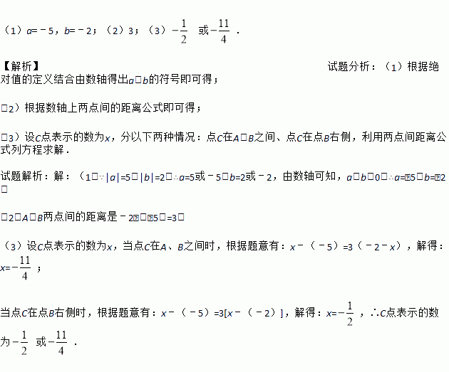 已知a、b分别是两个不同的点A、B所表示的有理数,且|a|=5,|b|=2,它们在数轴上的位置如图所示.