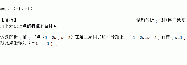 在平面直角坐标系内,已知点(1-2a,a-2)在第三象限的角平分线上,求a的值及点的坐标?