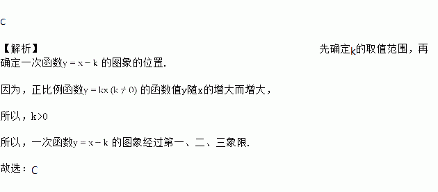 已知正比例函数的函数值y随x的增大而增大,则一次函数的图象大致是( )