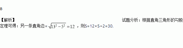 若直角三角形中,斜边的长为13,一条直角边长为5,则这个三角形的面积是( )