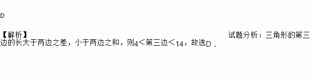 若一个三角形的两边长分别为5和9,则第三边长可能是 ( )