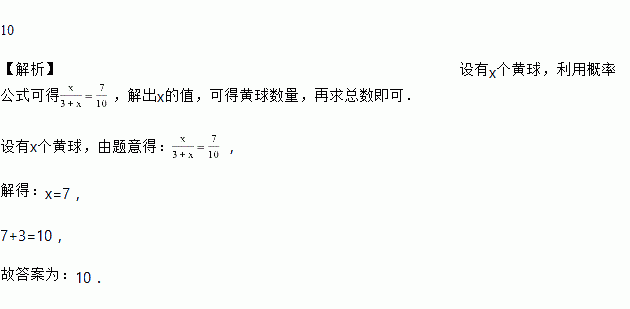 在一个不透明的袋子里装有个白色乒乓球和若干个黄色乒乓球,若从这个袋子里随机摸岀一个乒乓球,恰好是黄球的概率为,则袋子内共有乒乓球的个数为_____.