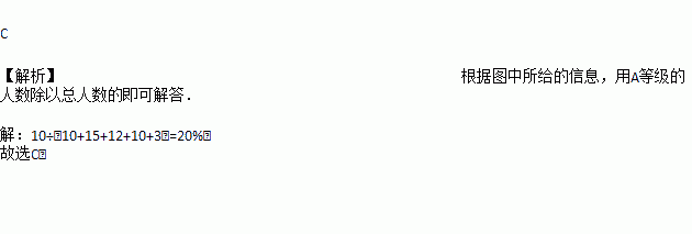 谢老师对班上某次数学模拟考试成绩进行统计,绘制了如图所示的统计图,根据图中给出的信息,这次考试成绩达到A等级的人数占总人数的 ( )
