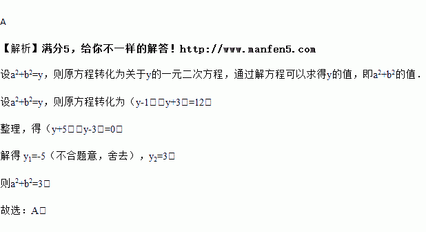 A. a2+b2=3 B. a2+b2=-5 C. a2+b2=3或a2+b2=5 D. a2+b2=2