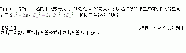 通过计算说明哪种饮料维生素C的含量高?哪种饮料维生素C的含量比较稳定?