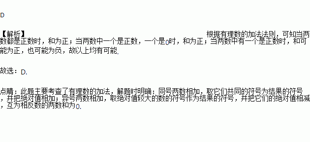 C. 两数中有一个是正数 D. 以上情况都有可能