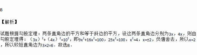 已知直角三角形的斜边长为10,两直角边的比为3:4,则较短直角边的长为( )