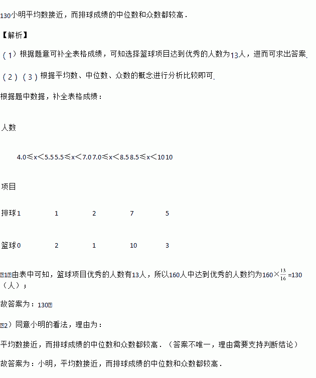 (1)如果全校有160人选择篮球项目,达到优秀的人数约为_____人;