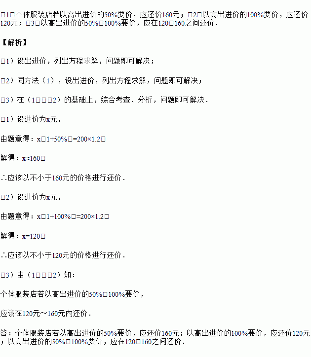 (3)个体服装店若以高出进价的50%~100%要价,你应该在什么范围内还价?