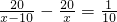 一辆客车以晚点6分钟,如速度每小时增加10千米,那么继续行驶20千米便可正点到达.如果设客车提速后的速度为每小时x千米,那么解决这个问题所列的方程是________.
