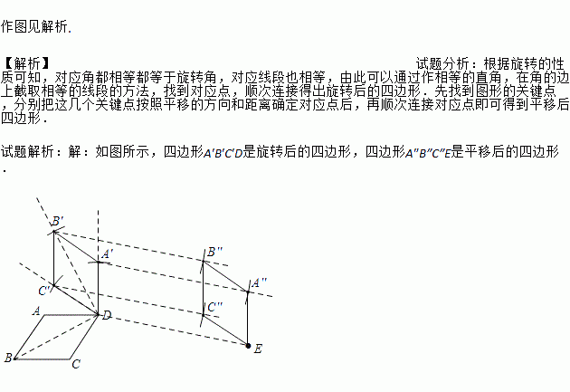 后,再平移,使点D平移至E点,作出旋转及平移后的图形