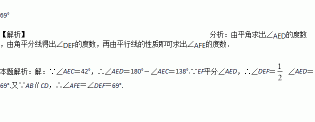 如图,AB∥CD,点E是CD上一点,∠AEC=42°,EF平分∠AED交AB于点F,求∠AFE的度数.