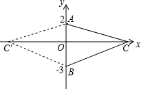 ∵点A、B的坐标分别为(0,2)、(0,-3),