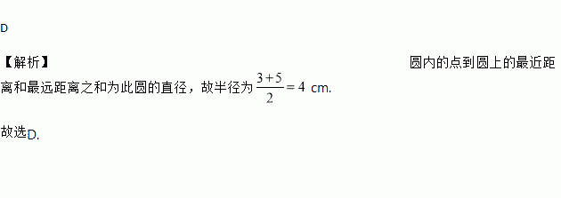 一个在圆内的点,它到圆上的最近距离为3cm,到最远距离为5cm,那么圆的半径为( ).