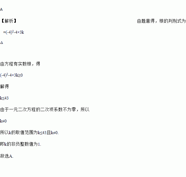 若关于x的一元二次方程kx2﹣4x+3=0有实数根,则k的非负整数值是( )